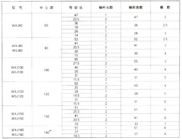 四、WXJ、WSJ減速器主要參數表